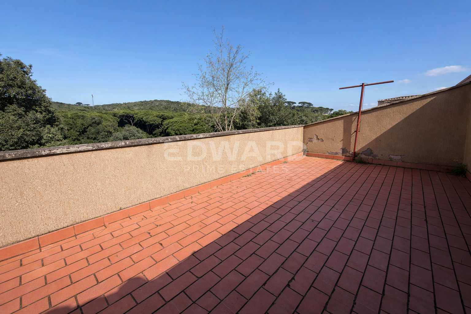 Upper floor: flat roof with open view and a convenient storage room in the attic.