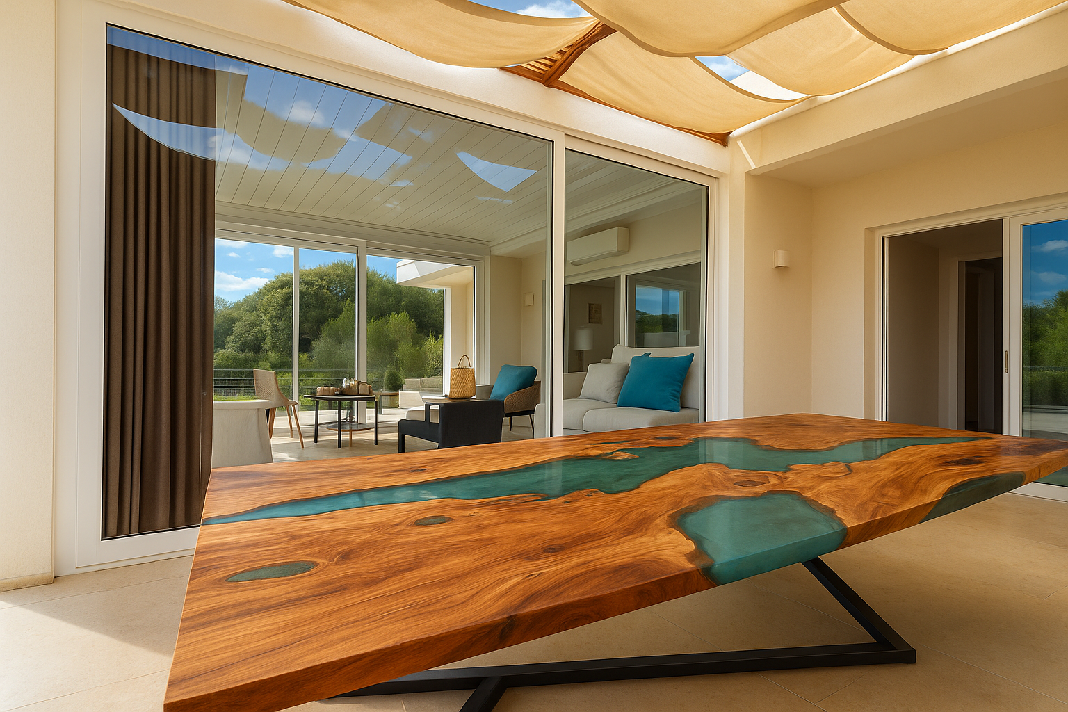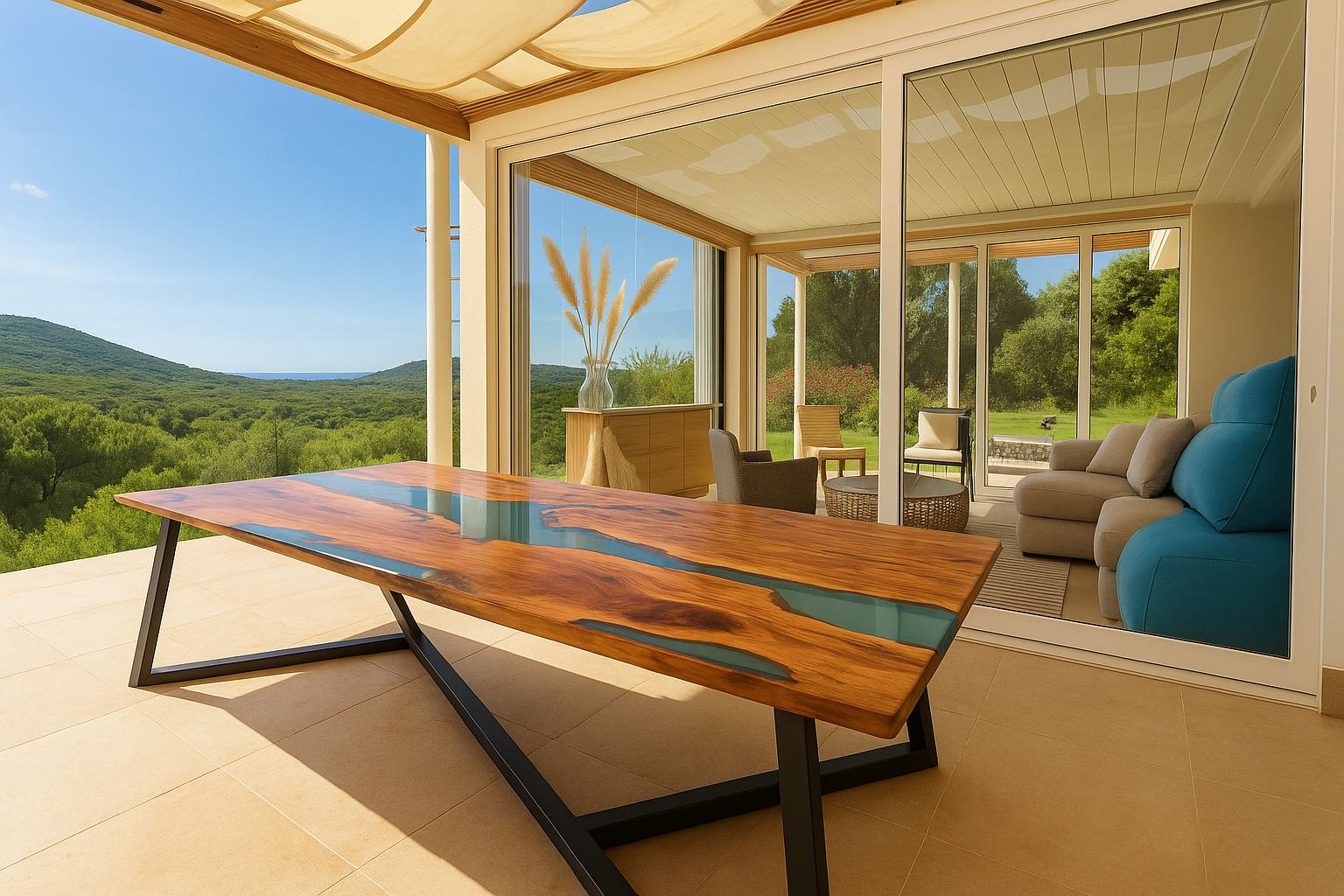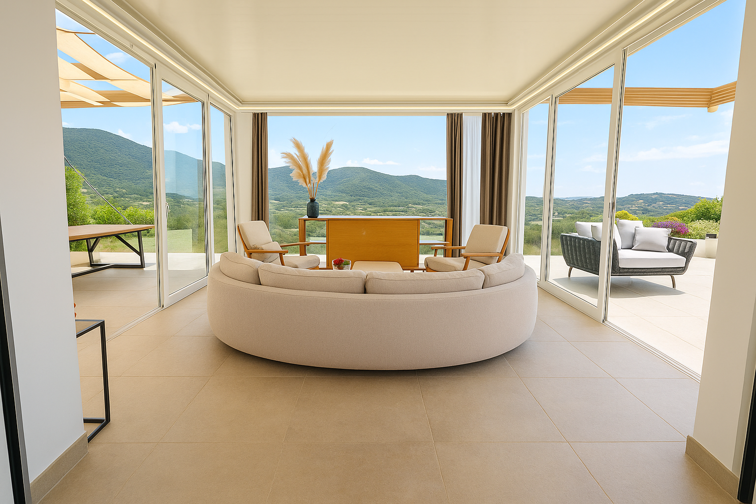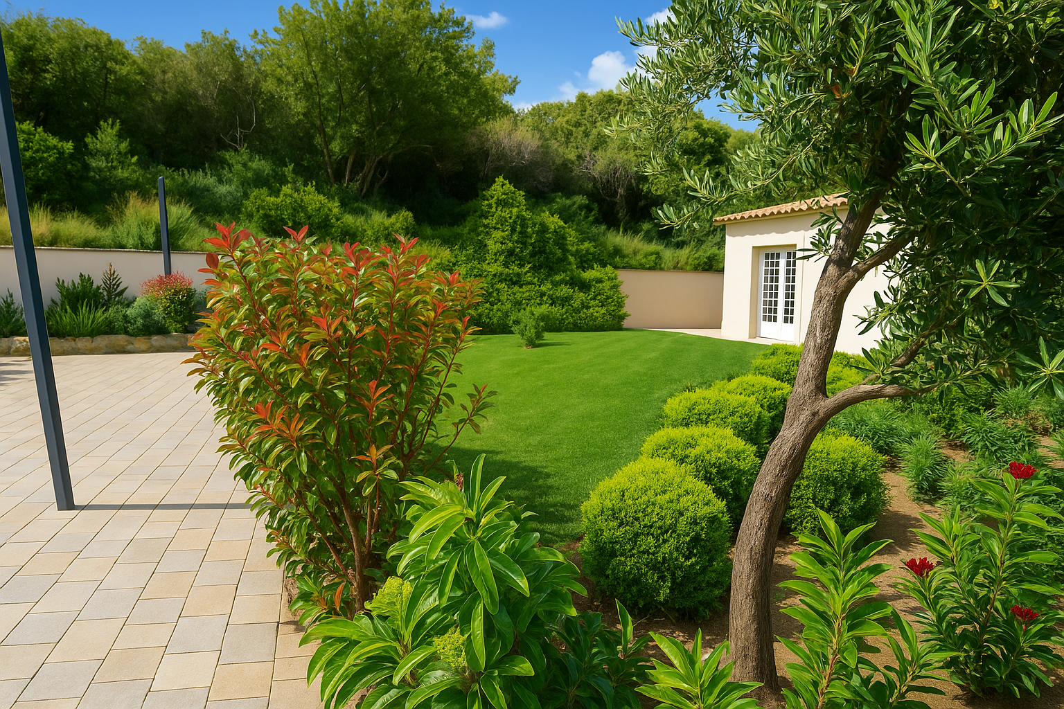The property extends over a plot of 5,000 square meters, of which approximately 800 square meters are used as a well-kept garden, and has a living area of 140 square meters, in addition to a bioclimatic pergola of 20 square meters.