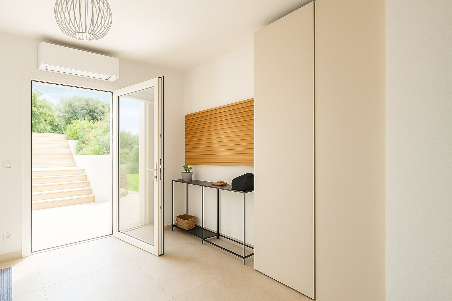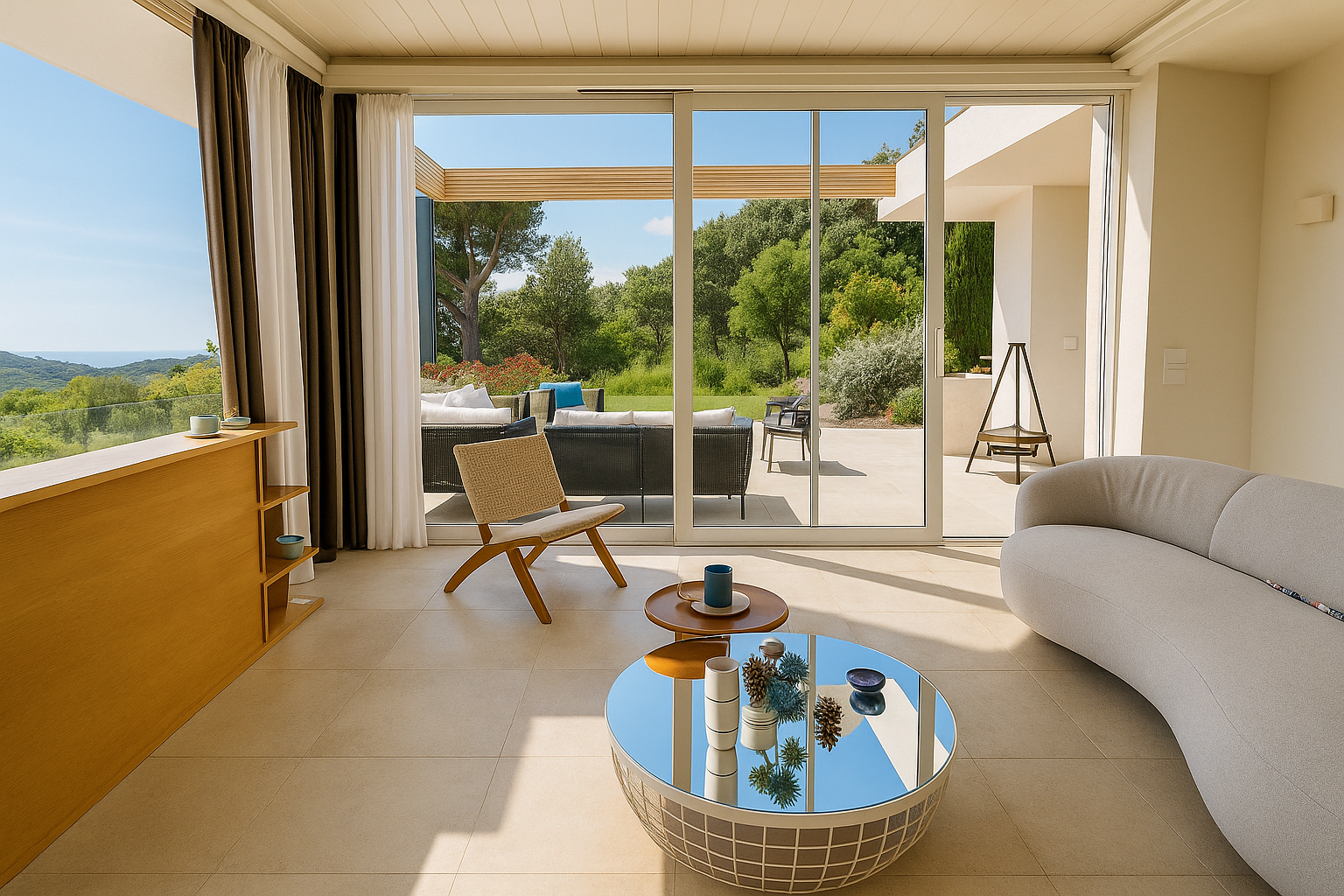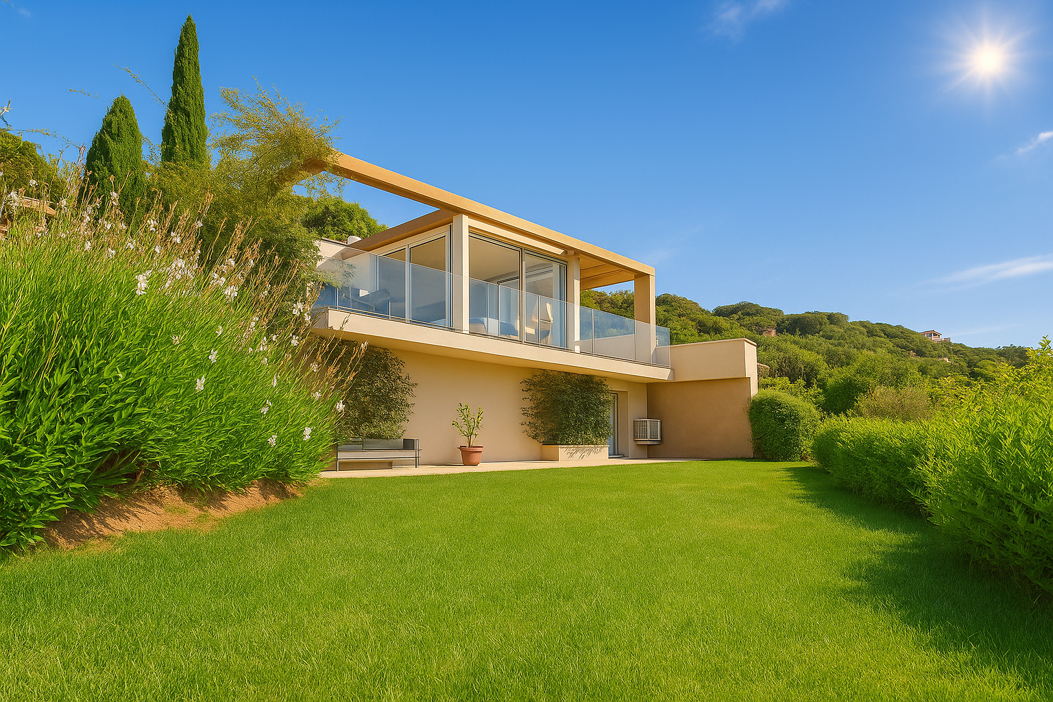 The villa is technologically advanced and self-sufficient in several respects. There is a 60 cm ventilated crawl space across the entire surface, a 9 kW photovoltaic system with 25 kWh storage batteries, a solar thermal system, a 6 kW column for charging electric vehicles and a Daikin hot/cold air conditioning system in every room.
