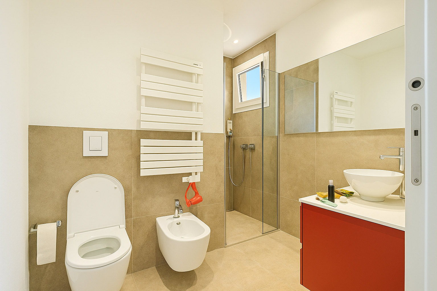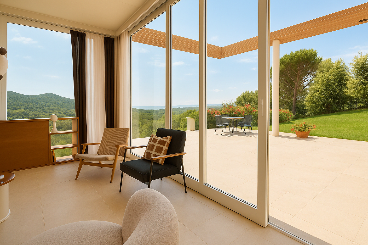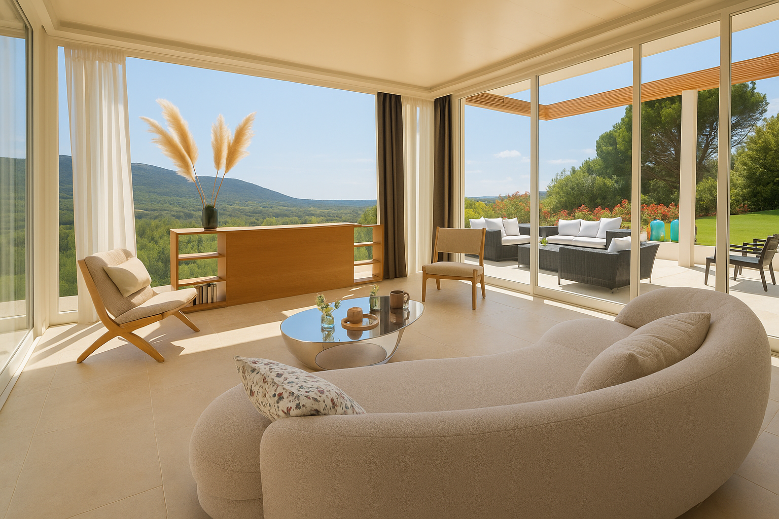 The villa is technologically advanced and self-sufficient in several respects. There is a 60 cm ventilated crawl space across the entire surface, a 9 kW photovoltaic system with 25 kWh storage batteries, a solar thermal system, a 6 kW column for charging electric vehicles and a Daikin hot/cold air conditioning system in every room.