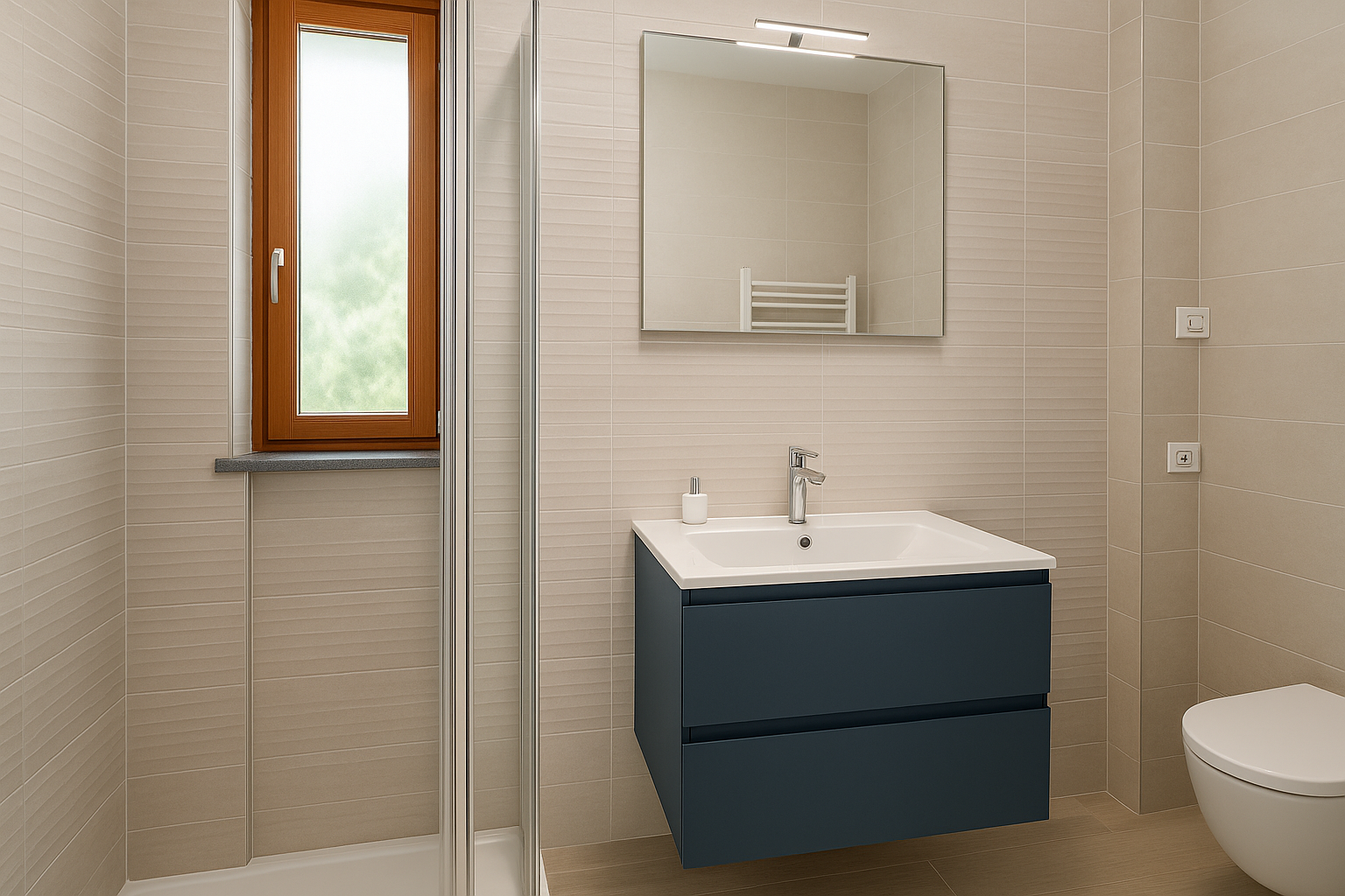 Basement – Two bedrooms, a bathroom with shower and window, and a boiler room.