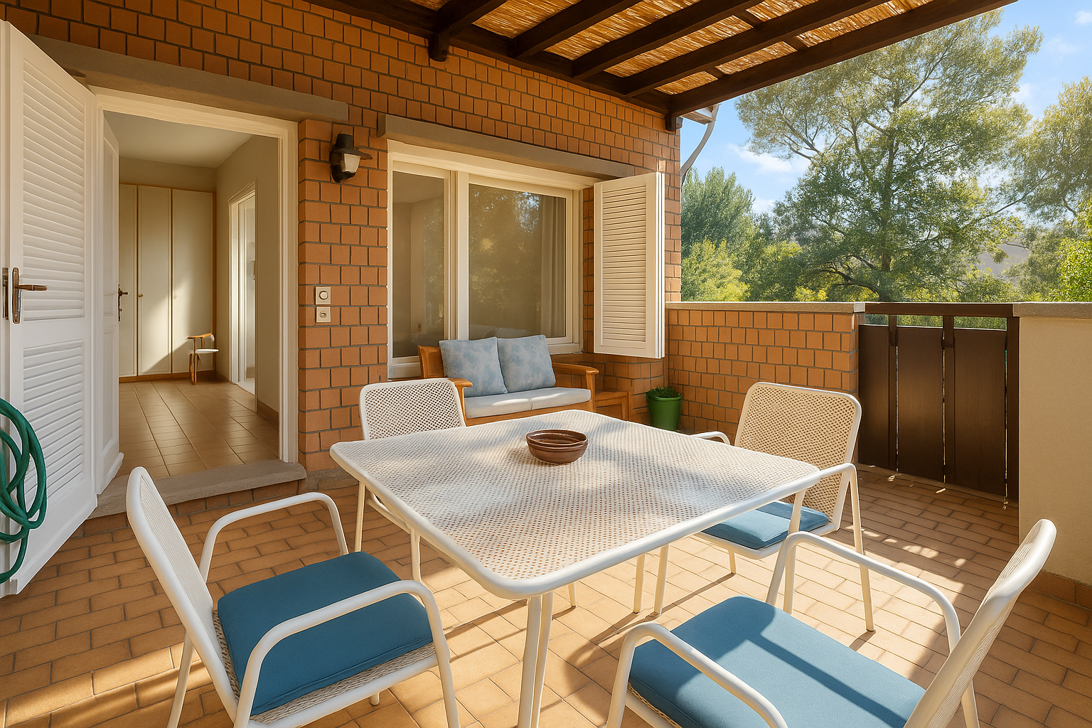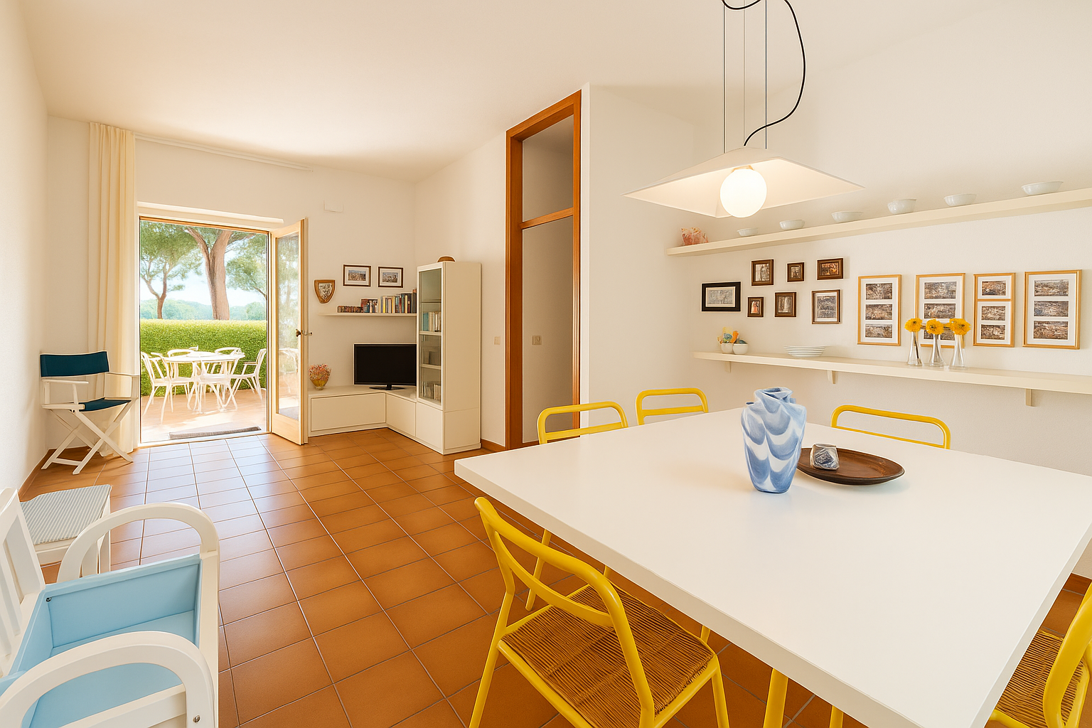The entrance opens onto a spacious and bright living area, perfectly connected to the outside thanks to the presence of a habitable terrace of approximately 20 square meters. The latter represents a real added value, ideal for outdoor lunches and dinners, for reading a book surrounded by greenery, or simply for enjoying the tranquility that characterizes this part of Punta Ala.