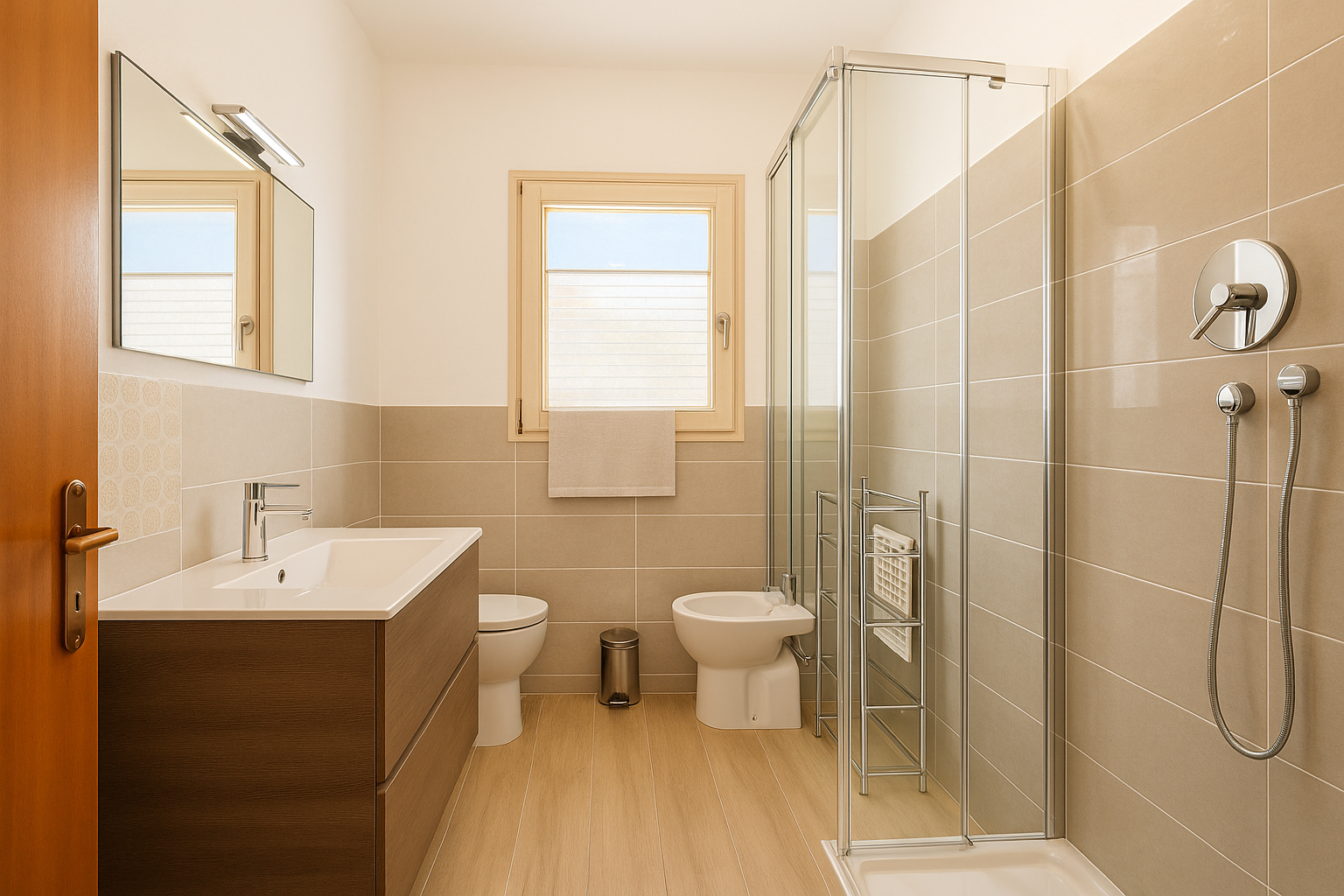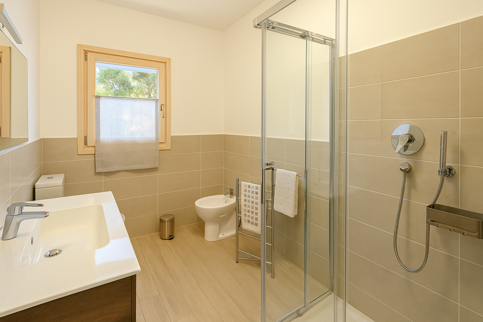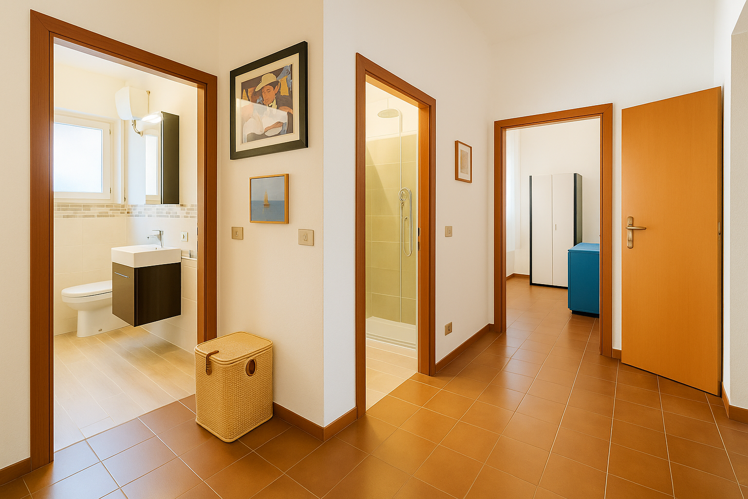 The sleeping area consists of three good-sized bedrooms, suitable for both families and guests. The two bathrooms, modern and functional, were completely renovated in 2019 with quality materials and contemporary taste.