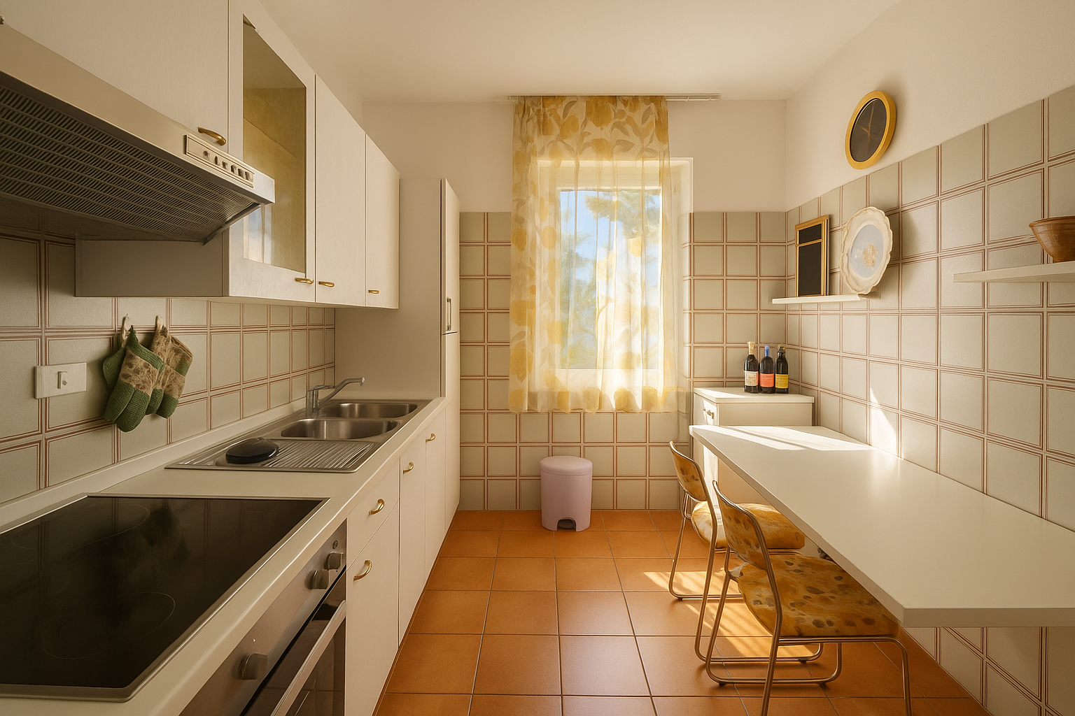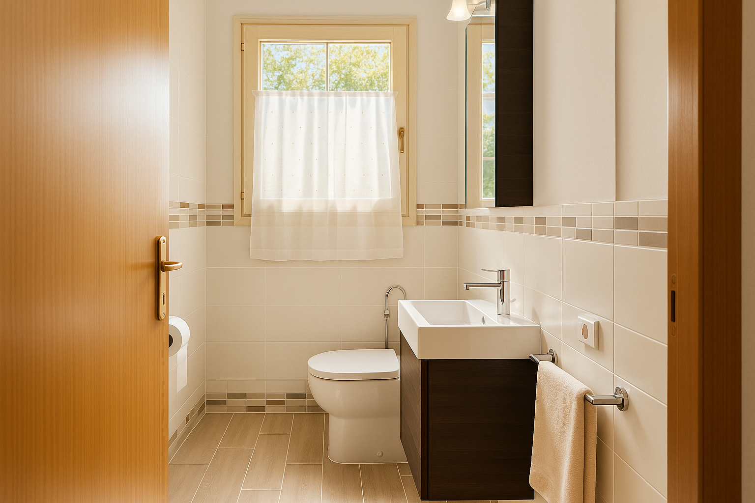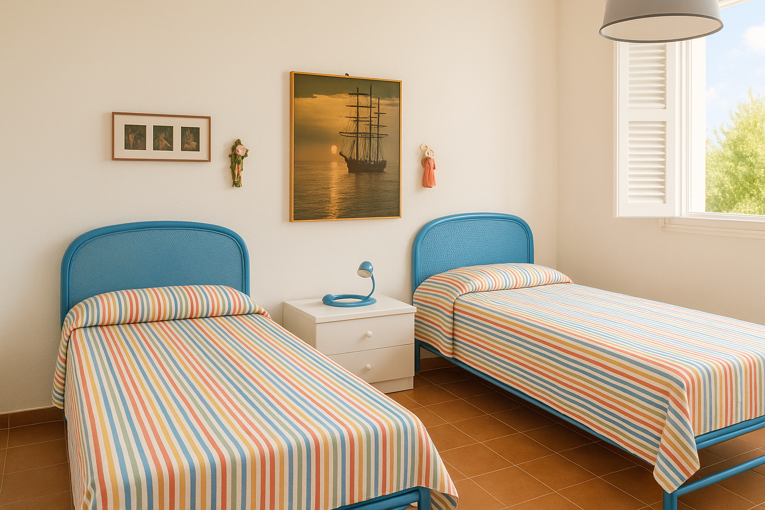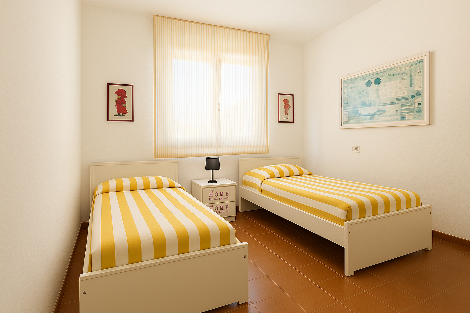 The sleeping area consists of three good-sized bedrooms, suitable for both families and guests. The two bathrooms, modern and functional, were completely renovated in 2019 with quality materials and contemporary taste.