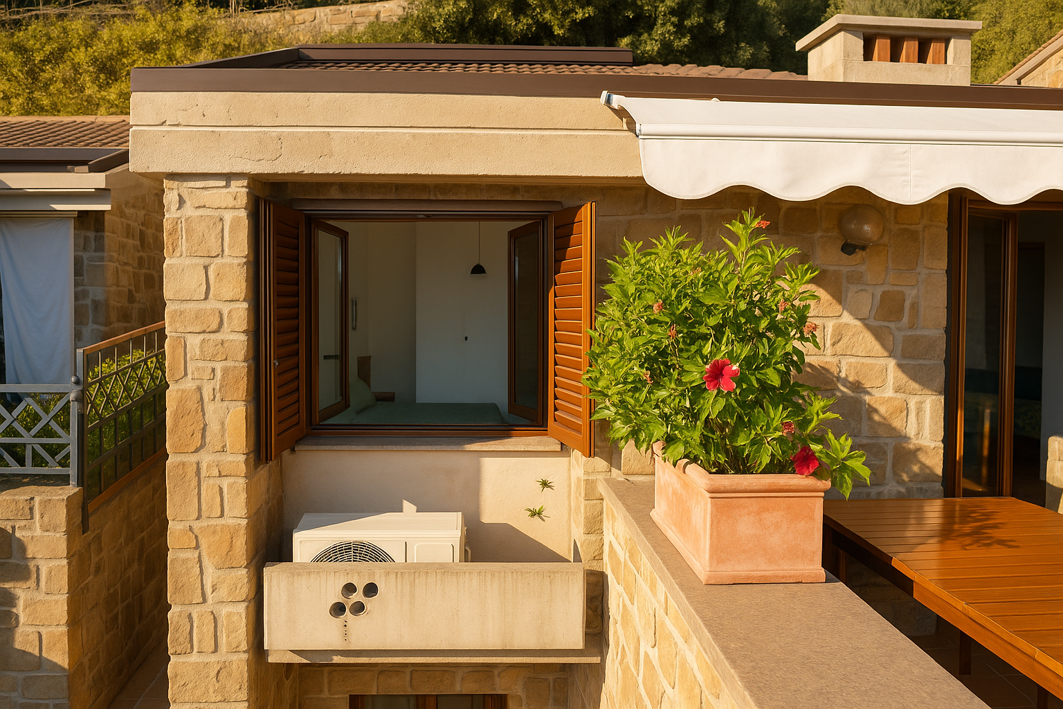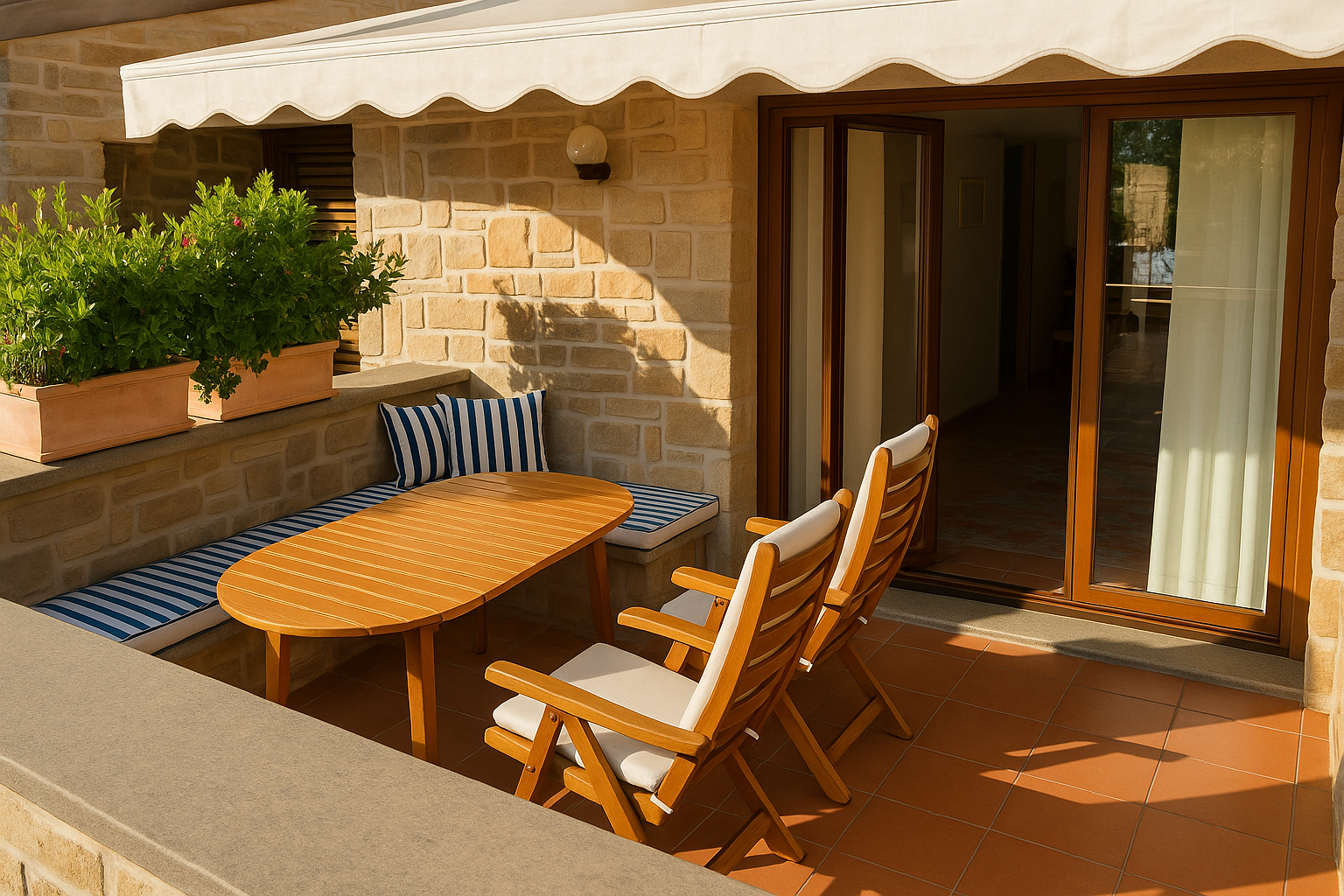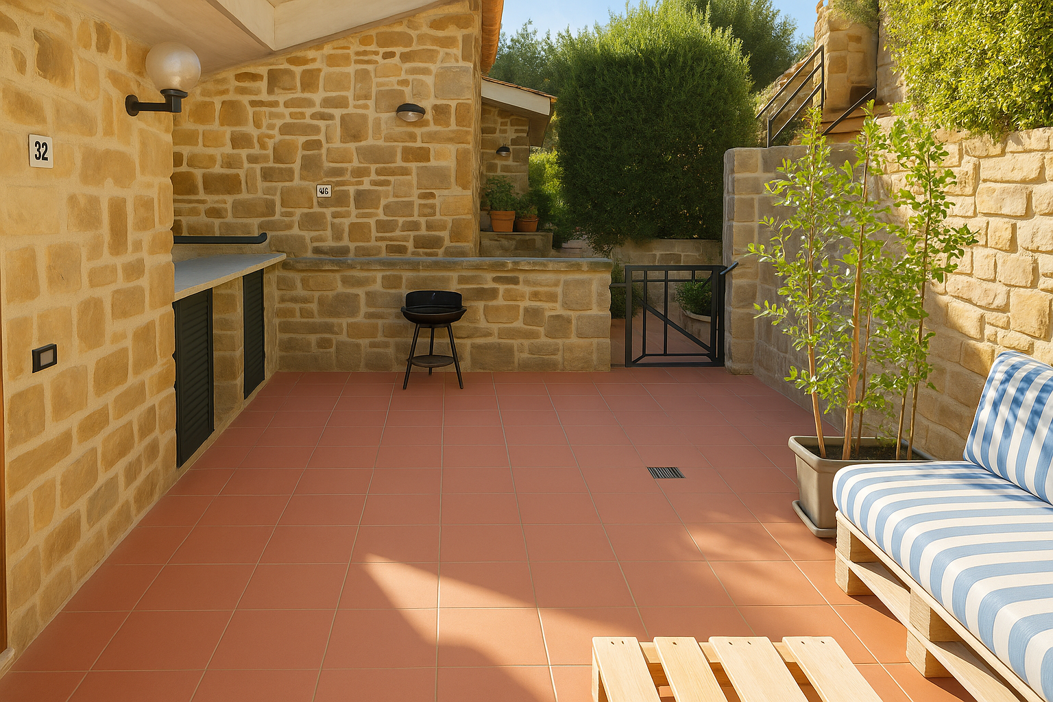 The thermal break aluminum frames, equipped with glass and mosquito nets, have been recently redone. There is a comfortable custom-made built-in wardrobe, a courtyard at the entrance and a habitable terrace, ideal for lunches and moments of relaxation outdoors.