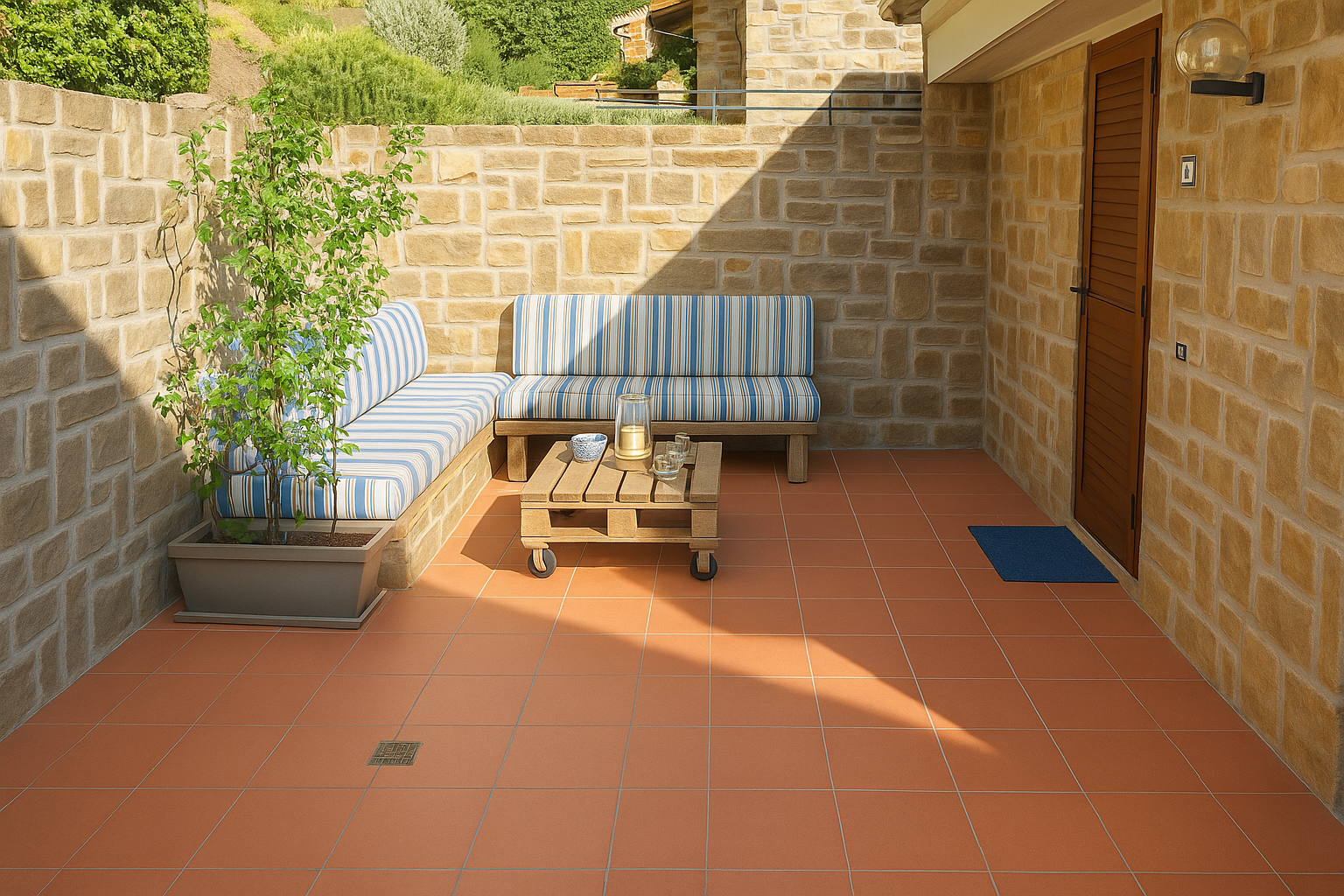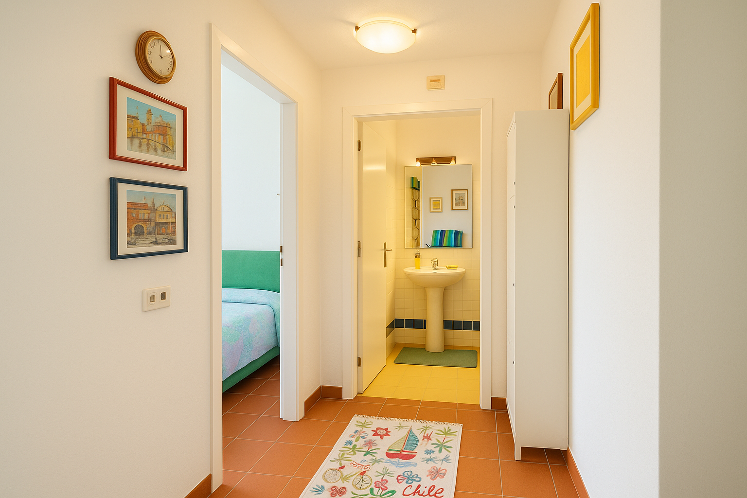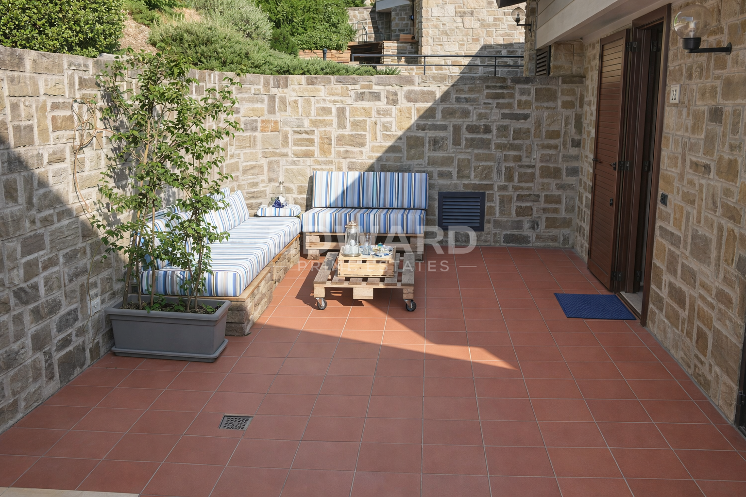 The thermal break aluminum frames, equipped with glass and mosquito nets, have been recently redone. There is a comfortable custom-made built-in wardrobe, a courtyard at the entrance and a habitable terrace, ideal for lunches and moments of relaxation outdoors.