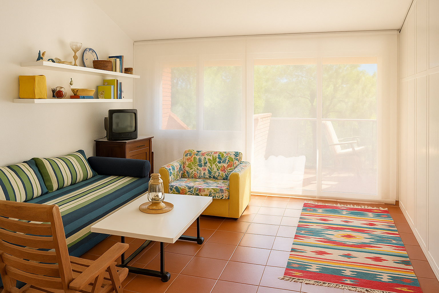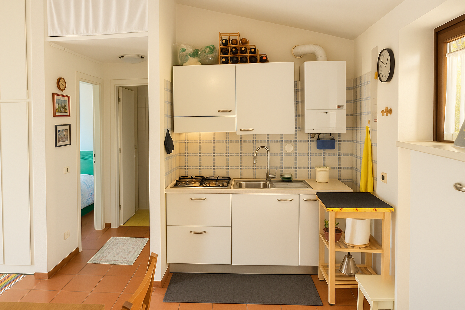 The apartment consists of a living area with a recently replaced methane kitchen, a bright bedroom with window and a bathroom with window. The rooms are functional and well-kept.